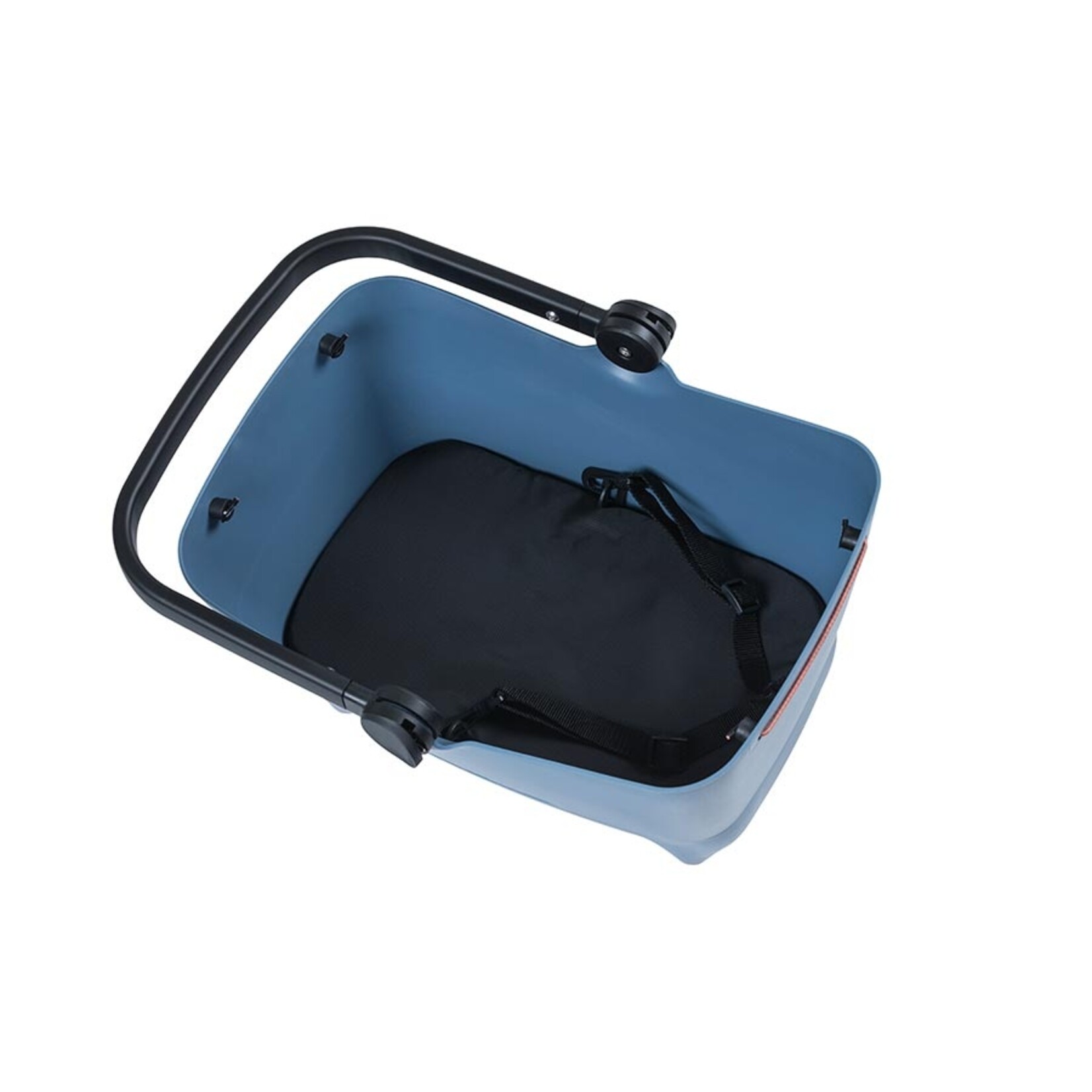 With the Basil Buddy dog bike basket KF in front, you can take your dog (or cat) anywhere you go. The blue basket is 45 x 32 x 22 cm – perfect for smaller dogs. The bike basket comes with a cushion for your pet to sit comfortably and includes a strap to securely fasten it. The basket is made of non-toxic and durable plastic. This way, you can easily keep the basket clean and it can take a beating. On to many safe miles with your dog!